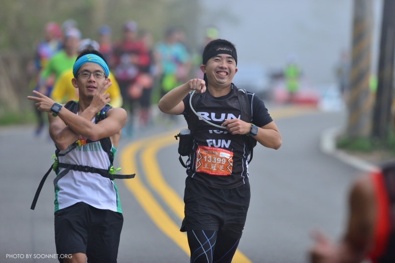 一切都很順,我還能依著自己的節奏,吃著補給品,繼續緩緩前進,而且還能有說有笑的和旁邊的跑友們聊天。