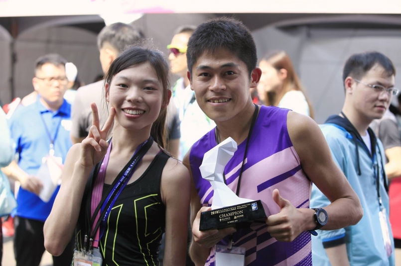 蔡雅安在今年再回到她初馬的賽事,並拿下國內女總一並跟同市民跑者也拿下男總一的川內優輝合影。