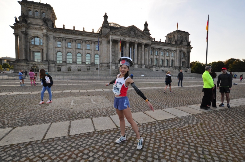 今年,她再接再厲,受到台灣精品的青睞,這次她不僅將自己的腳步延伸到了歐洲,還希望用自己的力量讓世界看見台灣,以頭戴自製台灣特色-電鍋造型帽參加德國柏林馬拉松。當她穿著印著台灣的賽服,跑過台灣精品的拱門時,她對自己感到無比的驕傲與感動,她很慶幸自己沒有因為那些先天性的限制而放棄,反而用堅持來換取這夢幻的一切。這天,她是全場最快的電鍋妹,也是來自台灣的驕傲。雅安用跑步開闊她自己的視野,更實踐了用跑步來看世界的這個夢想。