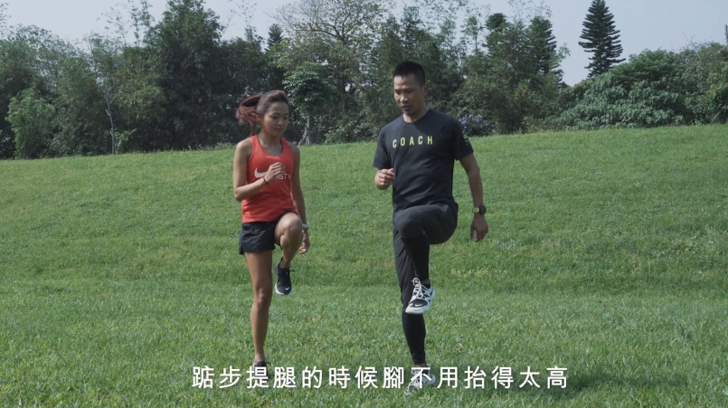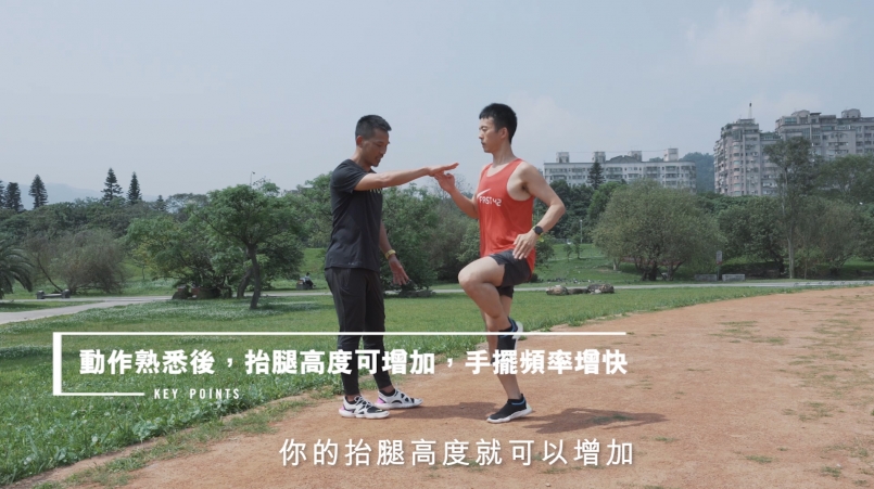 動作熟悉後即可增加抬腿高度,增加手擺頻率(圖片來源:運動筆記)