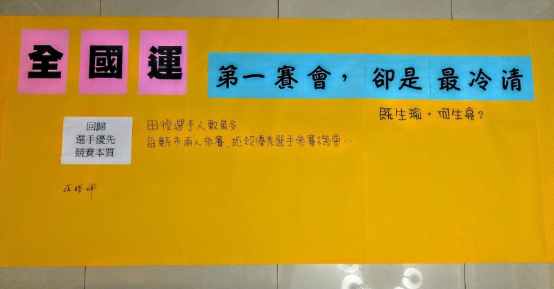 全國排名賽當天,連署增修全運會田徑各縣市參賽人數的簽名板