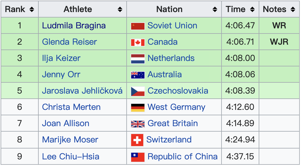 1972 年奧運女子 1500m 決賽 Ludmila Bragina 刷新世界紀錄