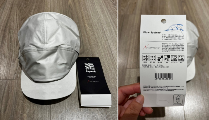 • 收到「Airpeak 降溫帽」趕緊打開來看看!在帽子的吊牌上強調了獨家的科技【Flow System】強調在配戴的時候會有氣流經過你的頭頂,帽內外空氣可以循環。憑著這點,值得一試!