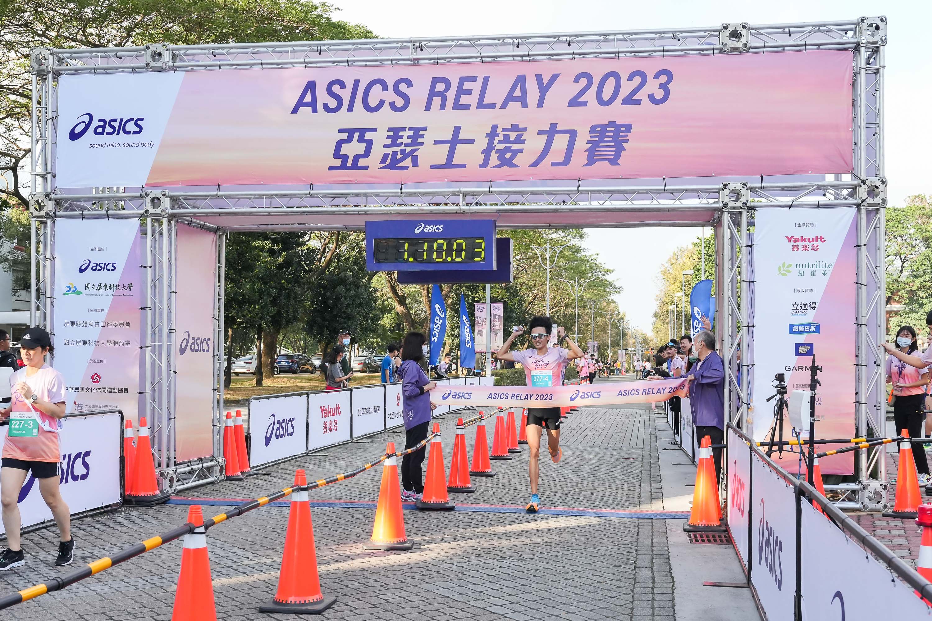 ASICS RELAY 重視每一棒傳承接力的團結精神,由每隊 4 人(其中至少一人須為女性)齊心接力,完成長度共計 20.4 公里( 4.7 公里、5.1 公里、5.1 公里、5.1 公里)的賽程。15 日在台灣亞瑟士謝玉真總經理和國立屏東科技大學張金龍校長等貴賓鳴槍之下,比賽正式開跑。經過 1 小時 10 分 8 秒,由 Team ASICS 選手温連忠、楊皓評、江彥綸及賴庭萱組成 ASICS SPEED 隊伍奪得冠軍。