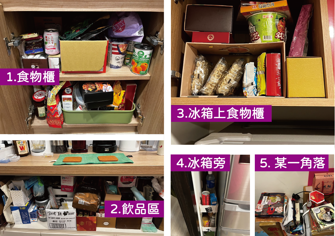 楊喬筑家裡共計有五大區域放置零食,堪稱能吃上一個整月不出門那種。