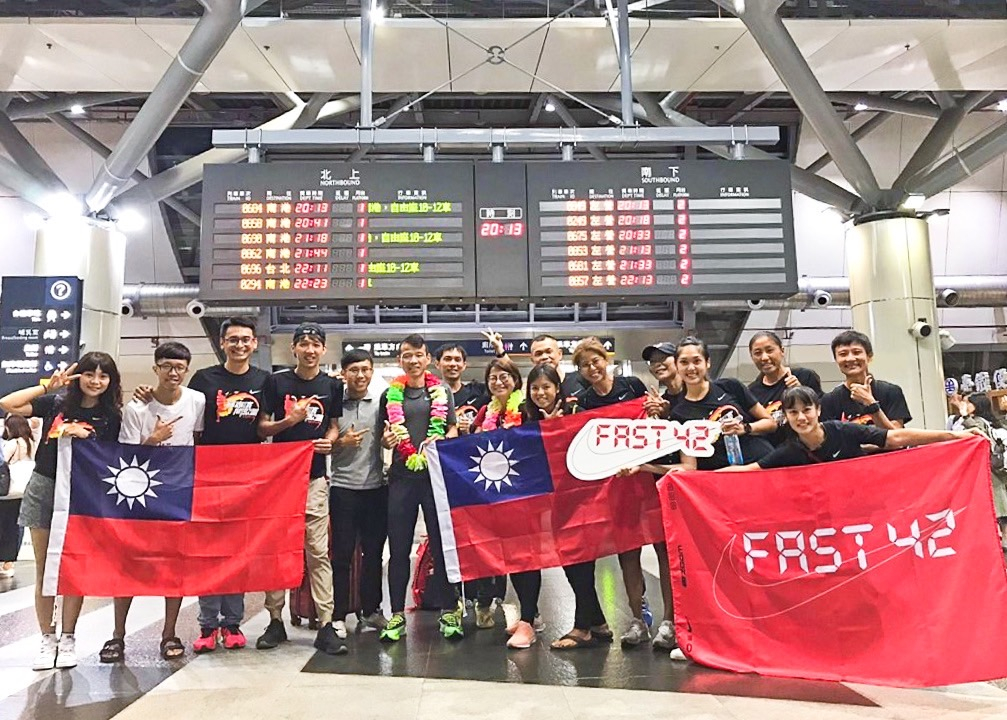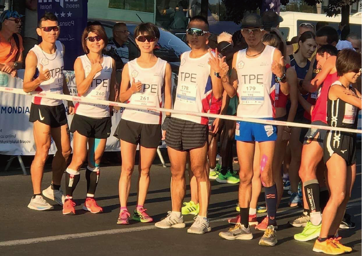在羅馬尼亞起跑前的中華代表隊,楊喬筑左二
