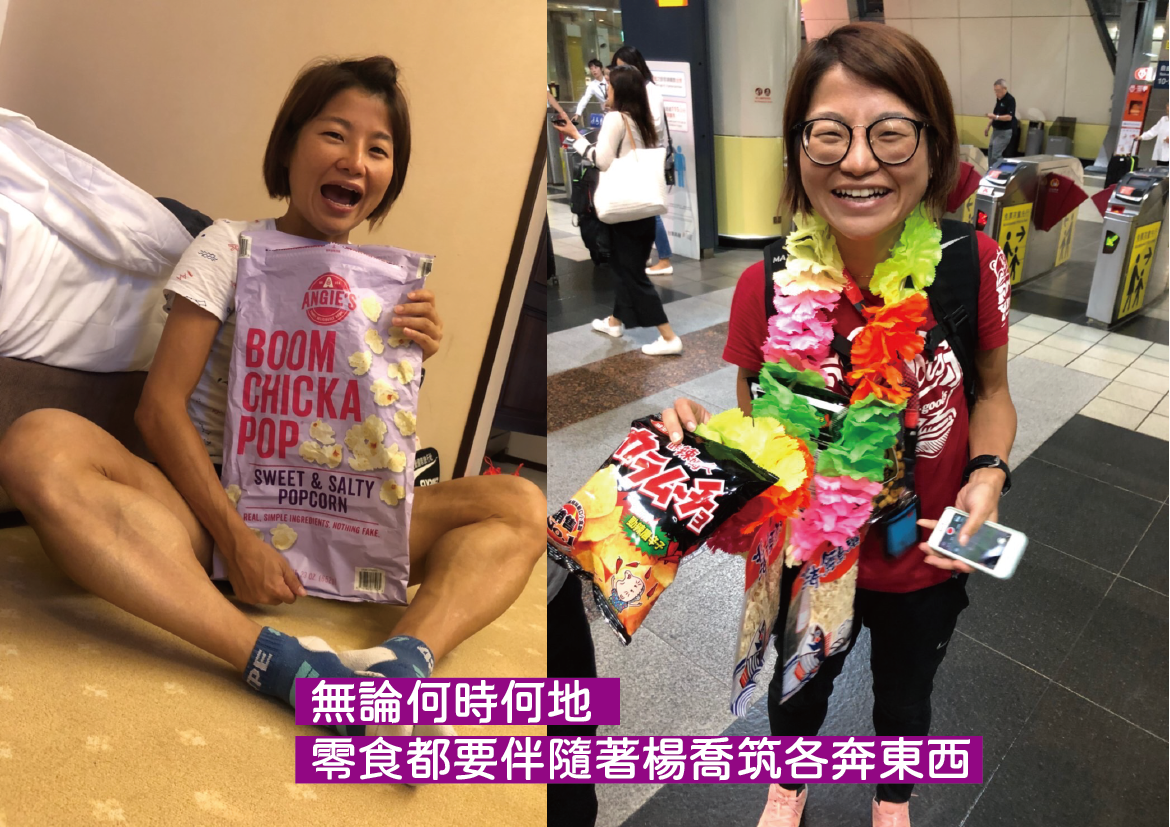 楊喬筑除跑步以外最大樂趣是「吃」,到處吃美食、戶外活動、爬山、獨木舟、SUP、攀岩垂降….等,楊喬筑說:「我家零食櫃大概可以撐一個月不用出去買食物都不會餓死的那一種 (笑)」2017 年至 2022 年共計二千多個日子,楊喬筑不斷挑戰全馬破 3 紀錄,成績終究游移在 3 小時 02 分左右,在確定報名上 2023 年大阪馬拉松後,第一次嘗試選擇做了一項改變,對她來說就像是叫有抽菸習慣的人戒掉一樣的掙扎難耐。每一個人都有選擇的權利,因為擁有自由就有選擇權,就像每天吃早餐一樣,選擇健康是地瓜、水煮蛋、無糖豆漿,選擇負擔是蛋餅、厚片吐司、奶茶,要走哪一條路線是自己操控,沒人會給你壓力該怎麼去吃,除非遇到健康亮起紅燈,聽命醫生的指示得健康飲食,否則一般來說很難戒掉多年來養成的習慣。楊喬筑這次鐵了心鞭策自己,關掉所有零食訊息一個月,全心投入調整身體成為巔峰狀態,為的是能好好在大阪馬拉松順利破 3,這個決心換來感覺身體變得更輕盈,跑起來體感比先前好很多。