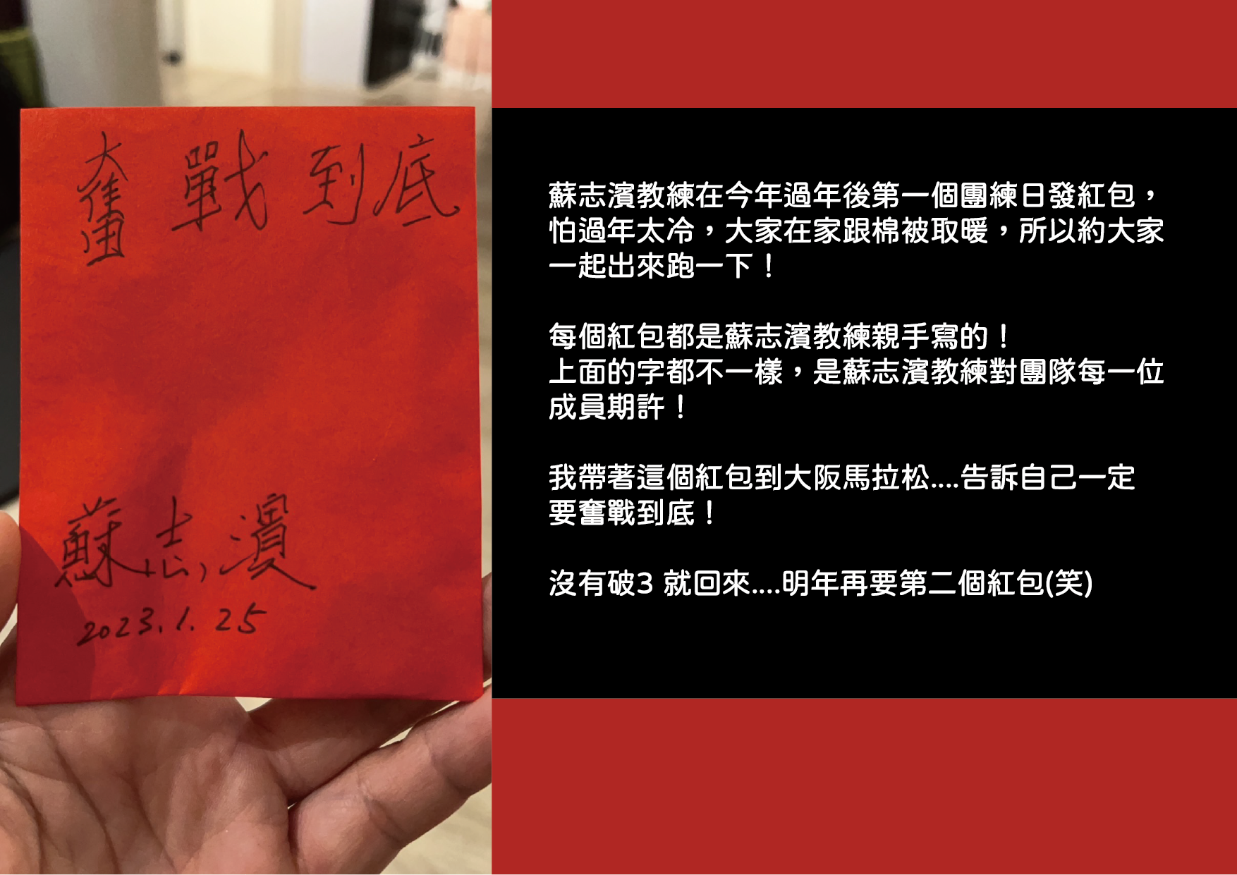 2022過年期間蘇志濱教練贈送為每一位團員紅包並親手寫上期許,極為貼心的舉動,愛死這個團隊的靈魂人物了!