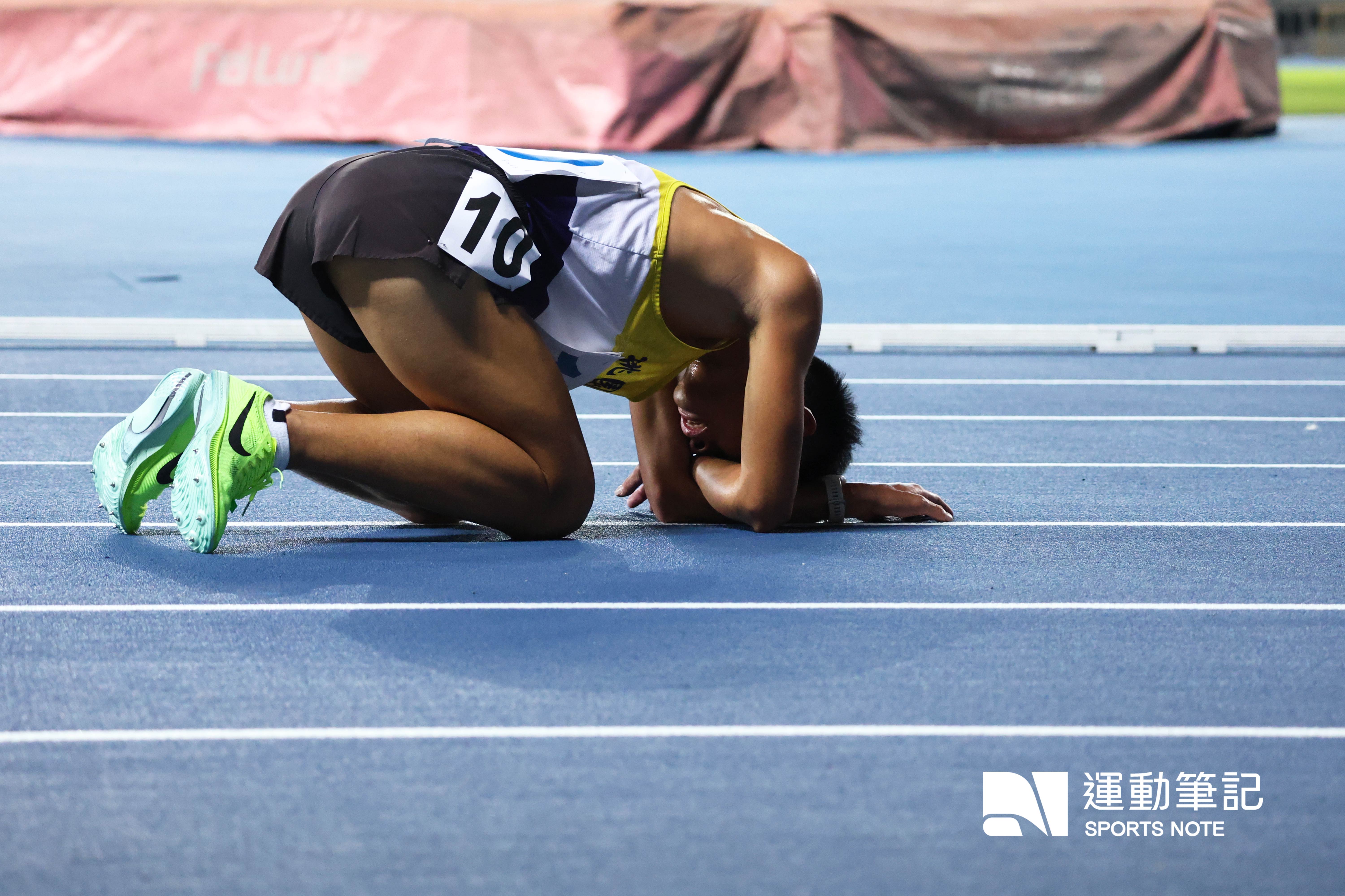 詹證諠 通過終點打破個人最佳後跪地痛哭。圖/Eulla