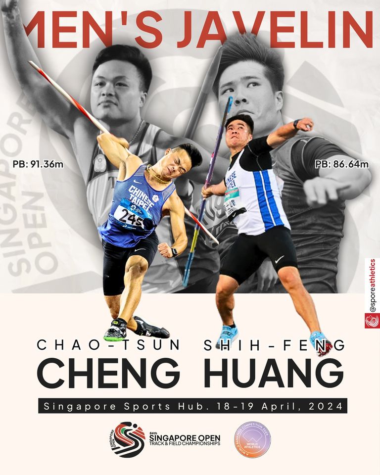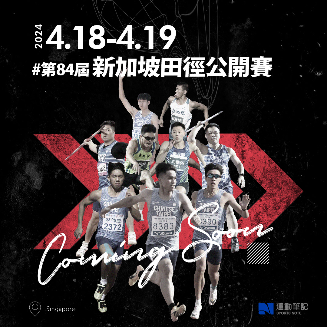 第84屆新加坡田徑公開賽,即將在 4 月 18 及 19 日在新加坡國家體育場盛大舉行,本次中華隊共派出九位選手參賽共八項目,將與來自九個國家的共 181 名運動員一同競爭各項目獎項。賽事第一日從標槍開始到隔日中午的跳遠,最完整的賽事時程表都將在以下公開,歡迎跑友們關注並為選手們加油。