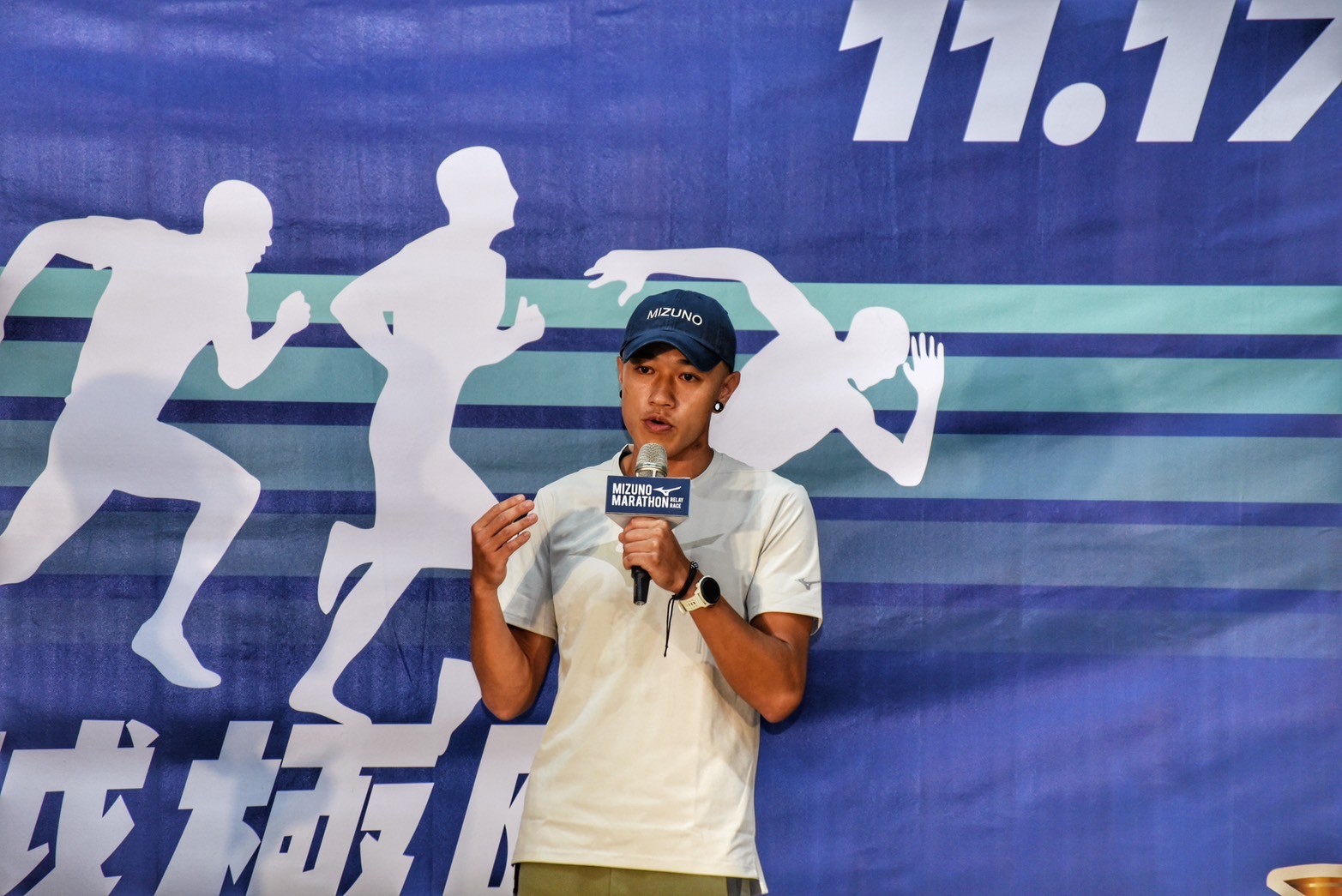 美津濃贊助選手「小葉」葉日鴻也現身記者會分享接力賽的注意事項。圖|MIZUNO