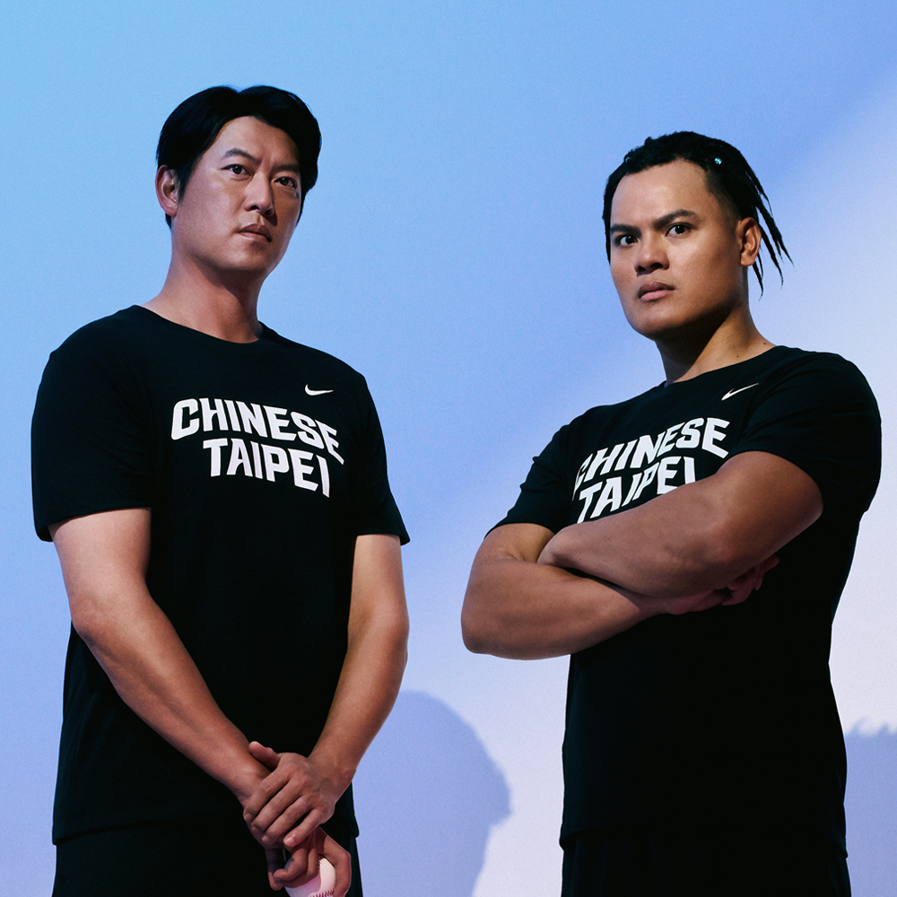 12 位台灣運動員演繹 Chinese Taipei Tee。圖|NIKE 提供為進一步詮釋 Chinese Taipei 隊徽所乘載的團結力量,以及世代傳承的深刻意義,Nike 邀請來自各領域的跨世代菁英運動員共同拍攝系列形象照,包括棒球運動員王建民、張育成、陳傑憲與吉力吉撈·鞏冠,籃球運動員陳盈駿、游艾喆、彭詩晴與林育庭,田徑運動員謝千鶴與陳奎儒,以及霹靂舞運動員孫振與 Nana,透過堅定的態度與神情,展現運動員征戰國際賽場時所肩負的榮耀使命。
