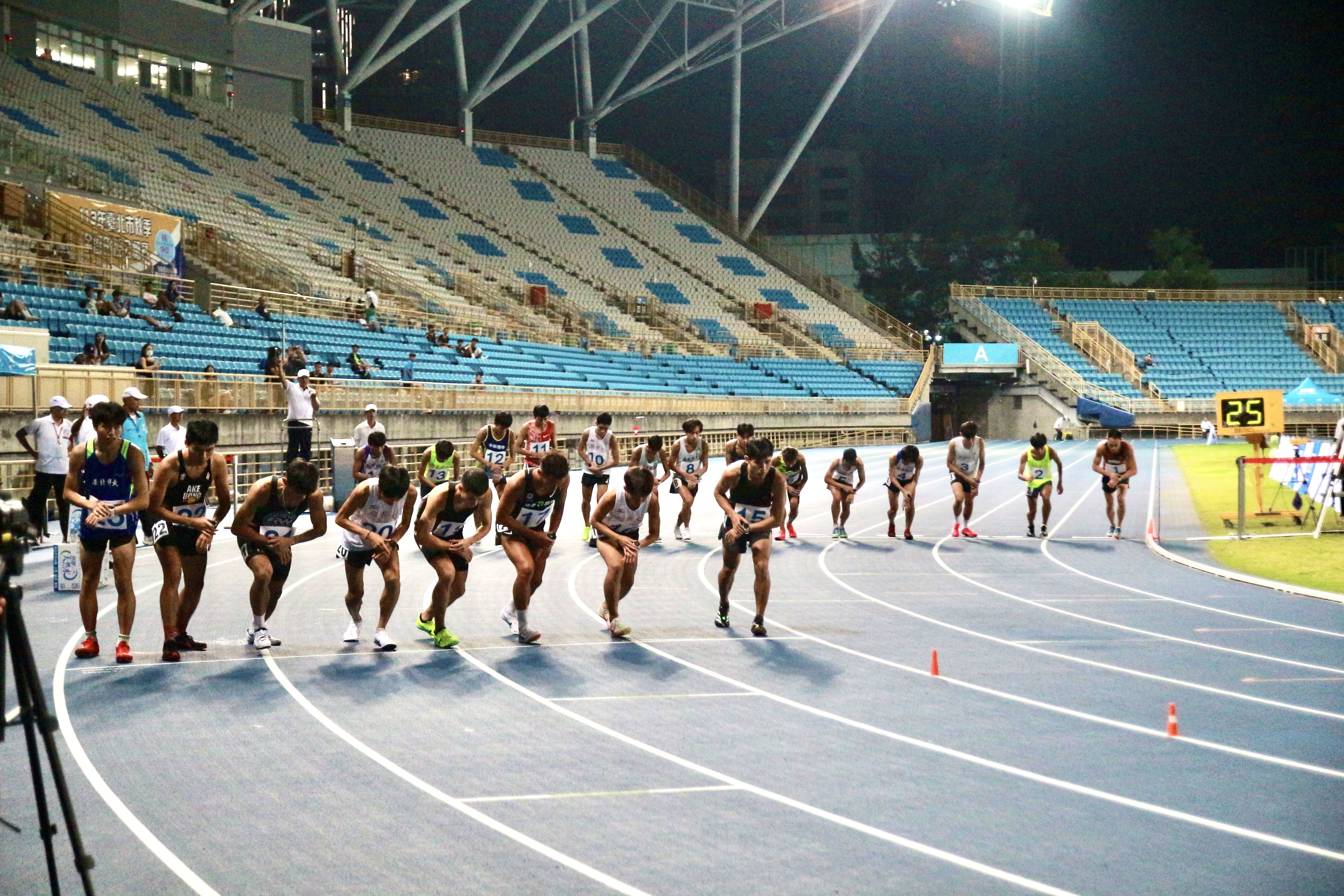 臺北市秋季全國田徑公開賽於今日(9/20)進入第二天的賽程,吸引各方好手們前來驗證訓練成果,而晚間壓軸登場的公開男子一萬公尺決賽,共有 22 位選手出席本場比賽,其中包括 「小葉」葉日鴻、周鴻宇、「蔡帝」蔡政軒、國體大 楊皓評、國體大 黃威衡、「臺體大的哥哥」魏冠羽 等好手。