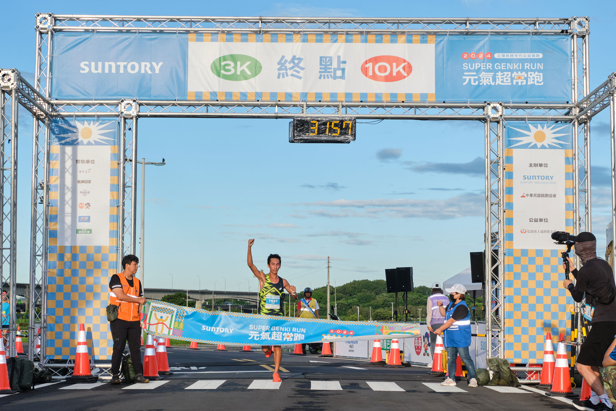 10 公里男子組第一名由楊皓評奪下,跑出 31 分 05 秒,突破歷屆以來最佳紀錄。圖|三得利跨世代公益路跑 提供啦啦隊女孩凱伊受邀參與賽事,並於完賽後受訪表示:「四月的時候第一次跑,後來有保持運動習慣,每週都有練習跑。昨天參加應援 2 點才睡,但今天天氣涼爽舒服,所以狀態非常好,比第一次跑進步了 6 分鐘,所以非常開心。」