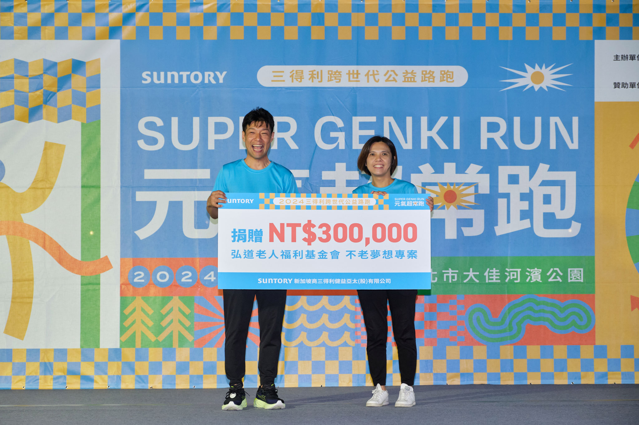 三得利健益以實際行動捐出30萬元新台幣,支持弘道老人福利基金會「不老夢想專案」,對熟齡族關懷的服務盡一份心力。