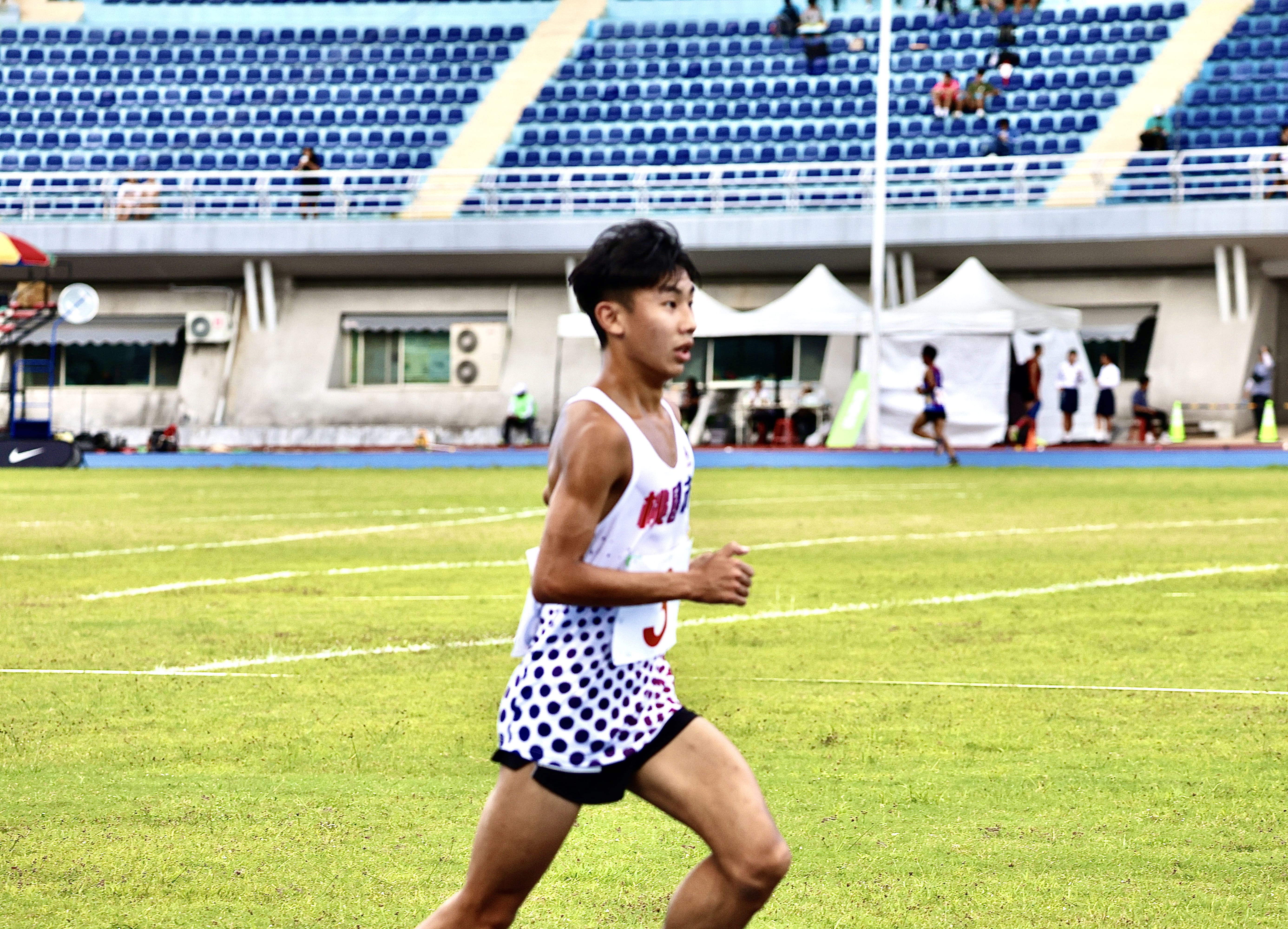 柏憲決定改採取積極的跑法,開賽後先跟了五圈,隨即出去領跑,能跑多快就多快,雖然最後沒有達到預期目標「 32 分內」,但也期許自己未來能在後半段保有撐下去的意志力,依然保持速度。
