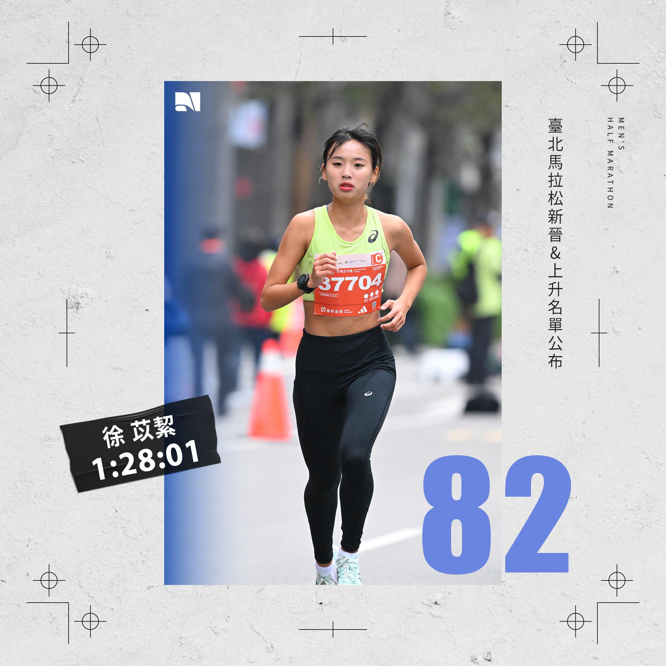 三千障礙全國紀錄持有者 徐苡絜,在今年九月份秋季盃滂沱大雨中以 10 分 30 秒72 打破了由陳昭郡於 2019 年所創下的 10 分 33 秒02 的全國紀錄,這次挑戰半程馬拉松,以 1 小時 28 分 01 秒完賽,成為新晉歷代百傑第 82 位。