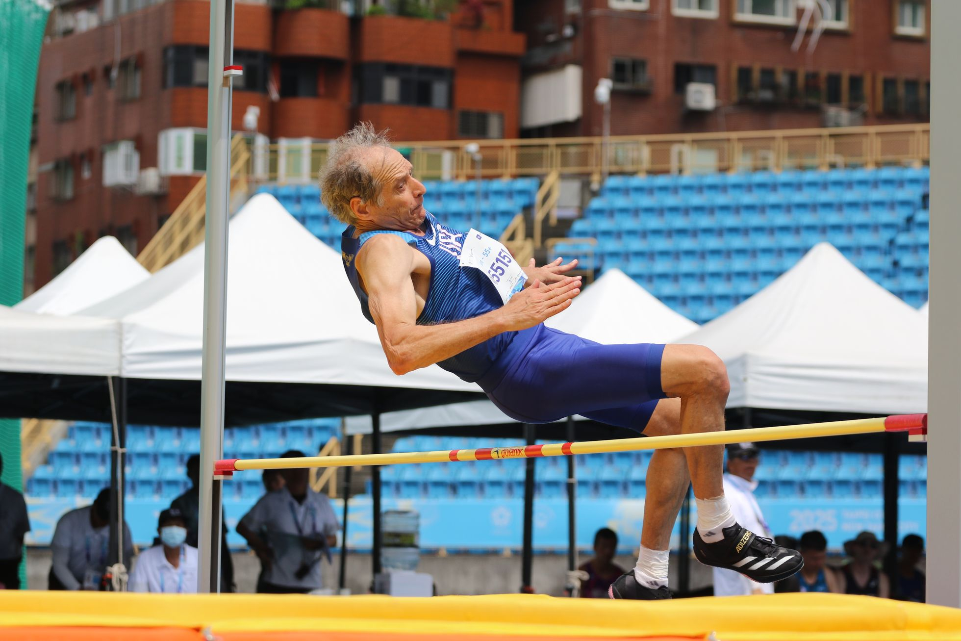 在5月23日至24日於台北田徑場舉行的世界壯年運動會(World Masters Games)田徑全能賽中,有一位特別的身影格外引人注目——來自美國、現年75歲的 Vincent Costello。雖然世壯運的全能賽事只開放至 55 歲組,Vincent 仍獲特別許可,與 55+ 組的選手一同參賽,在現場醫護人員全程待命的狀況下,完成了一場名為「夢想」的比賽。