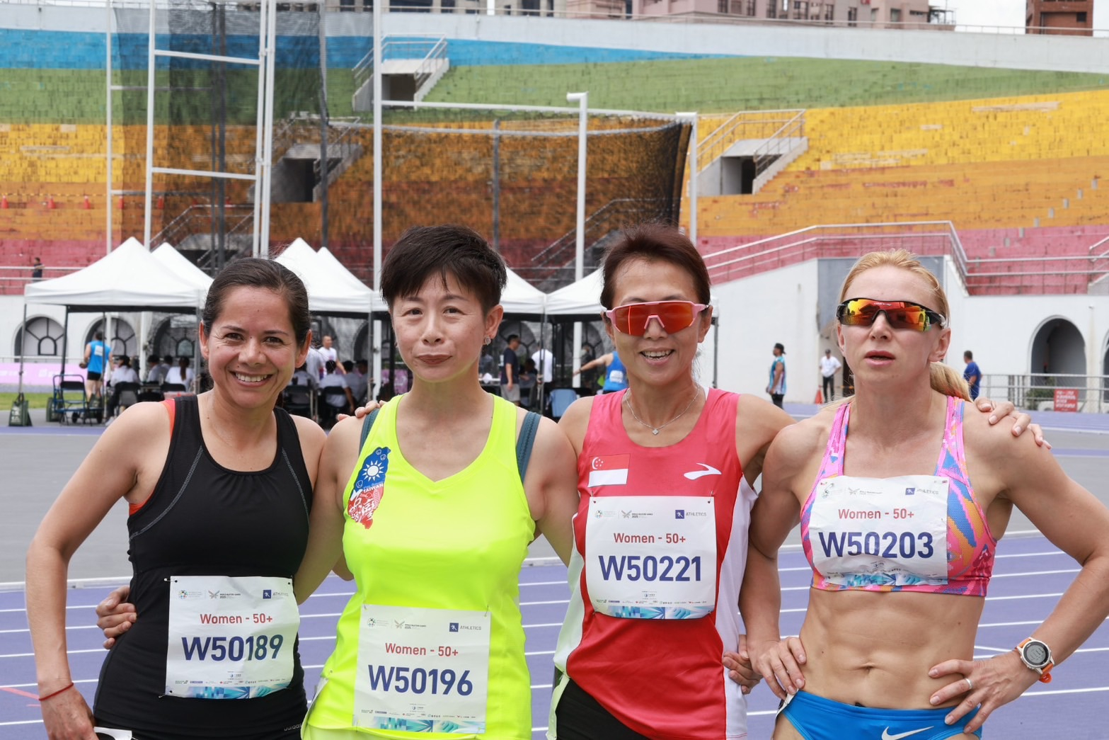 這些元素都支持詠絮老師站上起跑點,在場上與各國選手比拚,還真有「跟世界挑一場!」的氣勢,她的投入不只感動了家人、同事,也會被陳教練拿來提振田徑隊的士氣。近半年每週到兩週一次的訓練,讓她從繁忙的教學工作脫離,訓練後睡得更好、煩惱也煙消雲散,她眼神閃閃發亮地說:「在雨中跑也很舒服!」