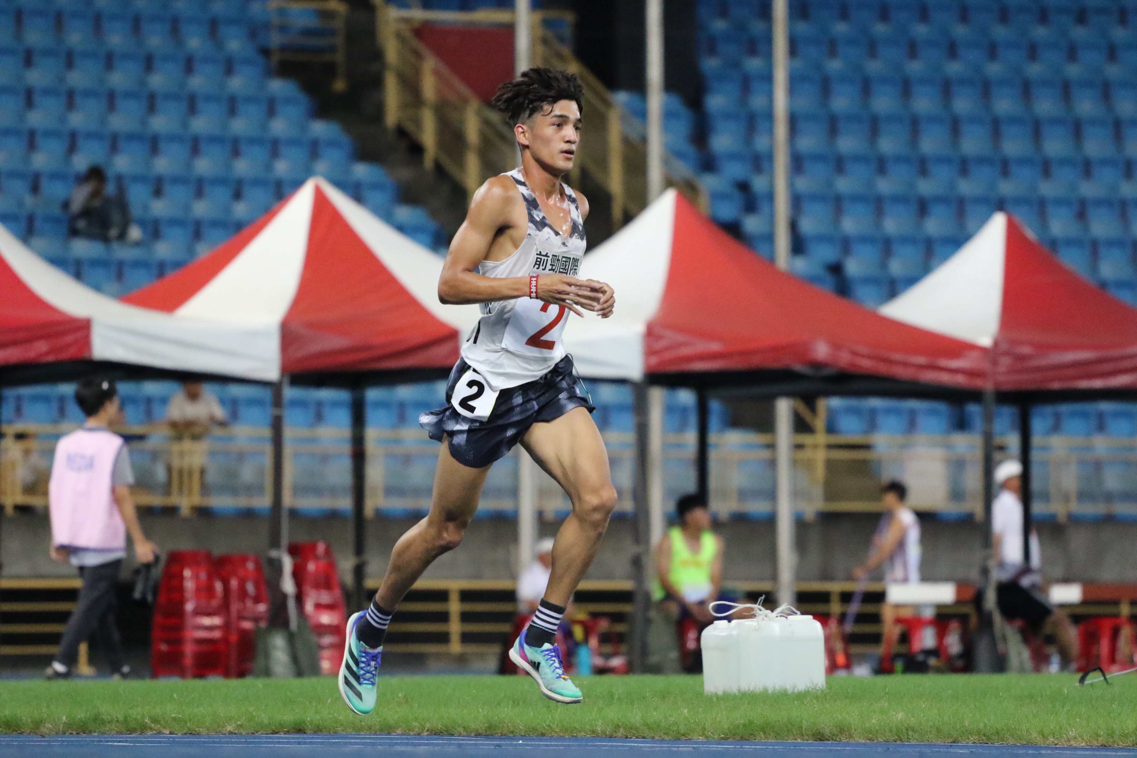 談到上個月前往日本參賽,挑戰他個人首場的 3000 公尺障礙,希望能夠爭取看看全運會的資格,他半開玩笑的說:「我那時候說自己是要去游泳的,很怕欄架跨不過或掉進水坑裡。」