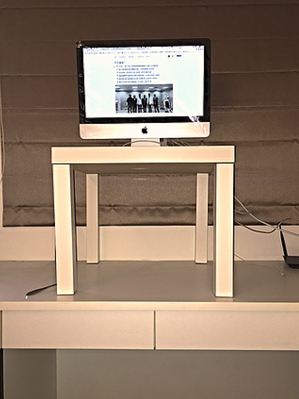 有人發明了「站式書桌」(standing desk),這是我自己的「站式書桌」 (圖片來源:王偉全)