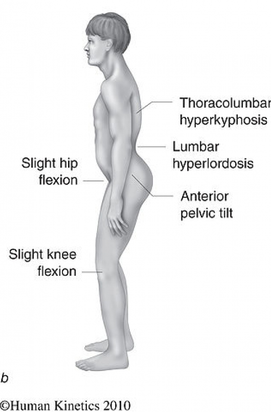 骨盆前傾(anterior pelvic tilt)的人,看起來有絕美翹臀,或讓人誤認為「很挺」,但其實臀大肌、腹肌很弱,是豎脊肌、髂腰肌代償的結果,使腰椎過度後彎,硬挺起來的。有些人明明看起來很瘦,小腹卻凸凸的,有可能就是骨盆前傾所致。所以之前日本「骨盤枕」會大熱賣,其實就是矯正骨盆前傾,來改善小腹凸出。