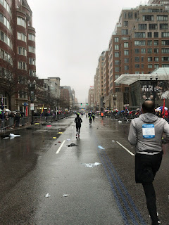 跑到了二十五公里左右我的腳又開始有抽筋的感覺,想必是三月練跑量不足加上低溫引起,我當下想,好吧,就跟倫敦馬遇到的狀況一樣,只好開始跑跑走走抓五個小時完賽。只差在倫敦馬的天氣很適合跑步,波馬卻是要全身溼在大雨裡走。最後的兩小時我連拿能量膠出來吃都懶了,心裡只想著持續前進到終點,然後晚上我要去吃韓式辣豆腐鍋,也沒有什麼心情看風景。在後段有一個地方遇到上坡時,我問旁邊的選手這是不是就是有名的心碎坡Heart Break Hill?結果她回答我:心碎坡我們剛剛已經跑完了。還沒來得及意識到難關,難關就已經結束,真不知該讓人哭還是笑。(謎之聲:反正都打算用走的有差嗎?)