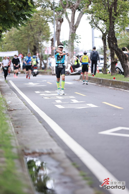很抱歉, 我已經沒有太多餘裕回應您. 點了點頭致意, 微笑收下這個稱讚. 第一圈遇到的型男選手當時沒有立刻回我話, 大概也是承受著我現在這種感受吧~ #借我沾光一下 #雖然人家比較高比較帥比較壯比較年輕還比較強 然後我維持著穩定的速度, 片面的, 慢慢的結束了這段共跑.