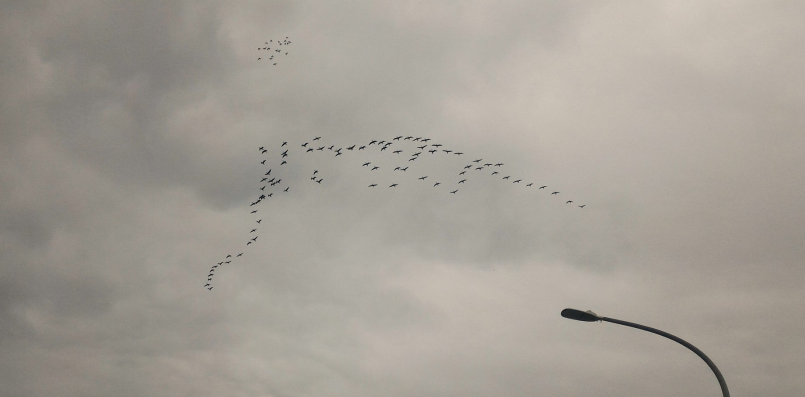 ▲堤頂大道高架橋賽道景色 | ▲堤頂大道上的野雁群飛 |