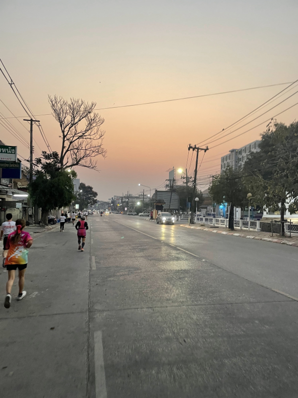 總算到了比賽日,清萊馬拉松凌晨02:30起跑,當天晚上9點半左右去睡覺,半夜1點鐘就起床吃早餐(宵夜?)通常賽前一晚都不會睡太好,這場當然也不意外,加上又特別早起跑,起初對這個起跑時間滿頭問號,心裡想這個時間也太奇杷了吧?台灣的賽事最早頂多也4點半或5點日本則都是9點居多,但聽說東南亞地區的比賽都是半夜起跑居多,或許是考量到氣候的關係吧?