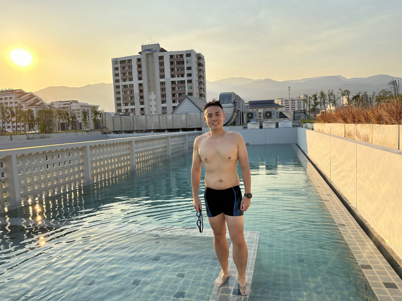 利用晚餐前空檔,來酒店頂樓泳池游泳放鬆一下