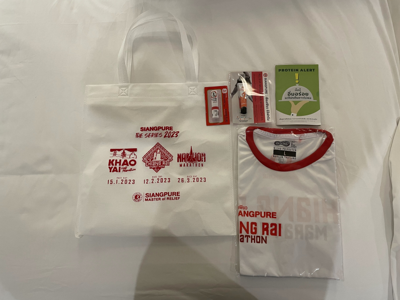 參訪完今天的行程後我們回到馬拉松報到地點:舊清萊市政廳 The Old Chiang Rai City Hall報到,既熟悉又陌生的感覺,上次海外報到已經是三年前在大阪了,上次是和女友自助前往,這次則是和台灣跑者團一起來,所以也受到大會媒體的關注和訪問,我想對世界各地來說都一樣,在這剛解封不久的當下,能有一批外國人來當地參賽,對他們主辦來說也一定相當興奮,整個EXPO展覽不大,只有幾攤贊助商和廣告商在設攤而已,但領到號碼布和參賽物資的時候還是很興奮和感動。