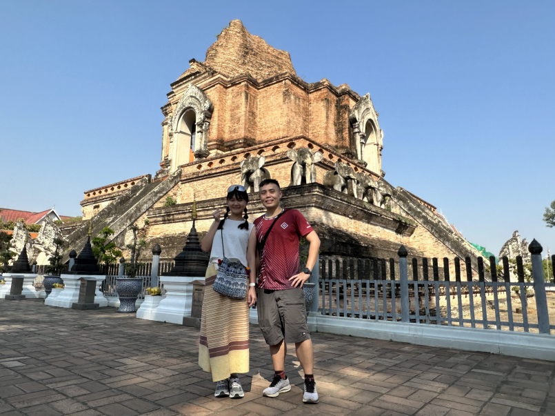 結束白廟參訪後便繼續清邁前進,約2.5小時的車程後我們來參觀清邁著名地標 「柴迪隆寺」 ,也是清邁六大寺廟中最為著名的一座,我覺得它的外觀很有吳哥窟的風格,和前幾天以顏色為主題的寺廟設計差很多,但四方形的尖塔造型也顯得相當霸氣。
