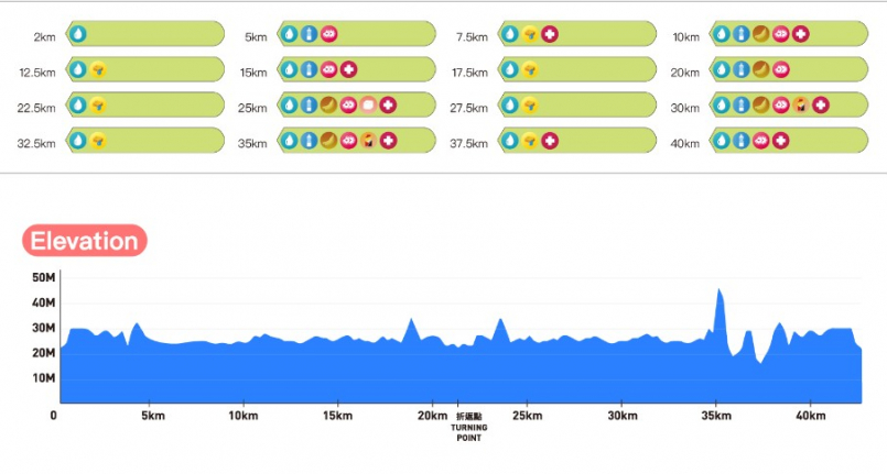補給站原則上我們每站都會進去做補給,我們也會提醒大家,但都是拿了就繼續向前跑,不做停留,要吃能量膠的跑友可以提早使用,再配合補給站的飲水,特別要注意了。