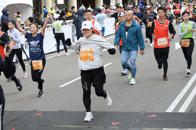 最後的2公里我努力地往前跑,期待看到終點的那一刻,跨過終點時,我內心開心地喊著:yes!我做到了!我用最後一個月的時間做到了!我以個人成績2小時48分(大會成績2小時55分)完成了台北馬。
