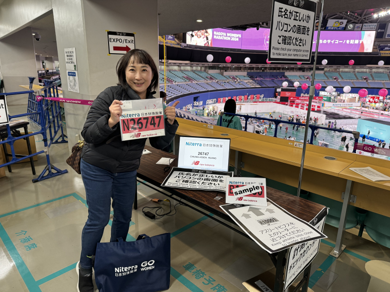 我們抵達名古屋巨蛋領號碼布時,工作人員很貼心的確認我們的護照和QR Code,再給我們號碼布的資料袋。