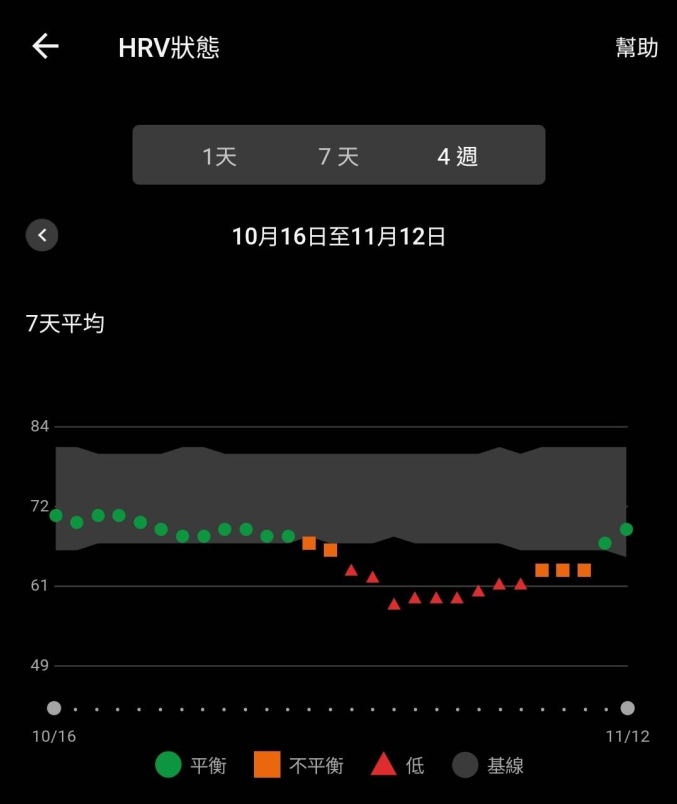 2️⃣另外,賽前三週我也有安排在長榮馬拉松執行30km馬拉松配速跑,沒想到那天超級熱體感約30度,大約跑到28km我就沒力,硬拖著狂抽筋的雙腿扛完,也導致後續兩週的恢復效率不佳(HRV數據跌落谷底),一直到最後一週才算是調整回來,也影響神戶馬倒數三週的訓練排程。