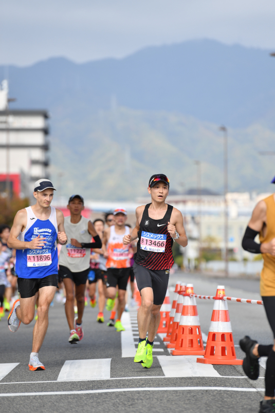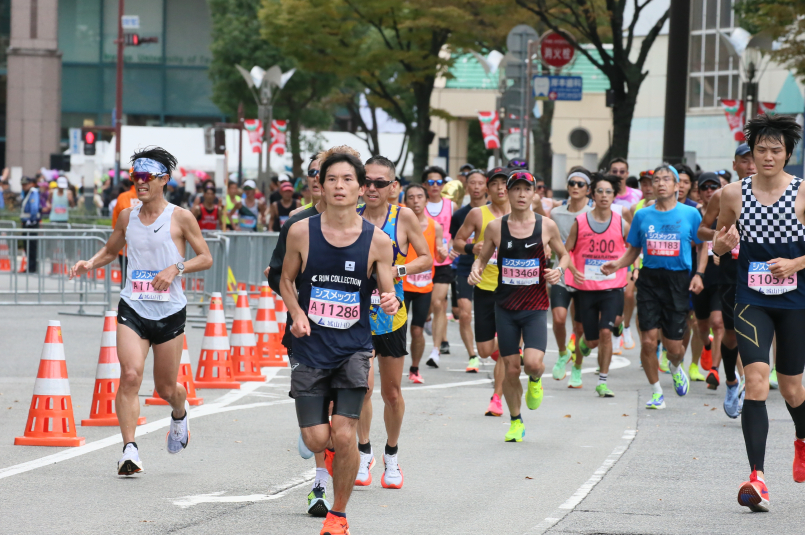 3️⃣我的起跑是B區,前面還有S、A區,原本以為要在人群降速卡很久,但日本跑者的水平真的很高,以Sub3配速出發的人數非常多,因此即便周圍都是人,也沒有導致降速的發生。