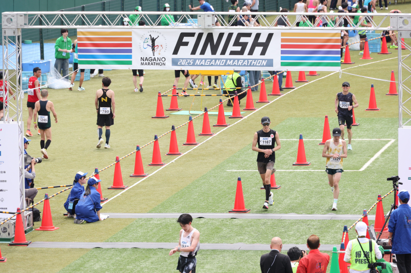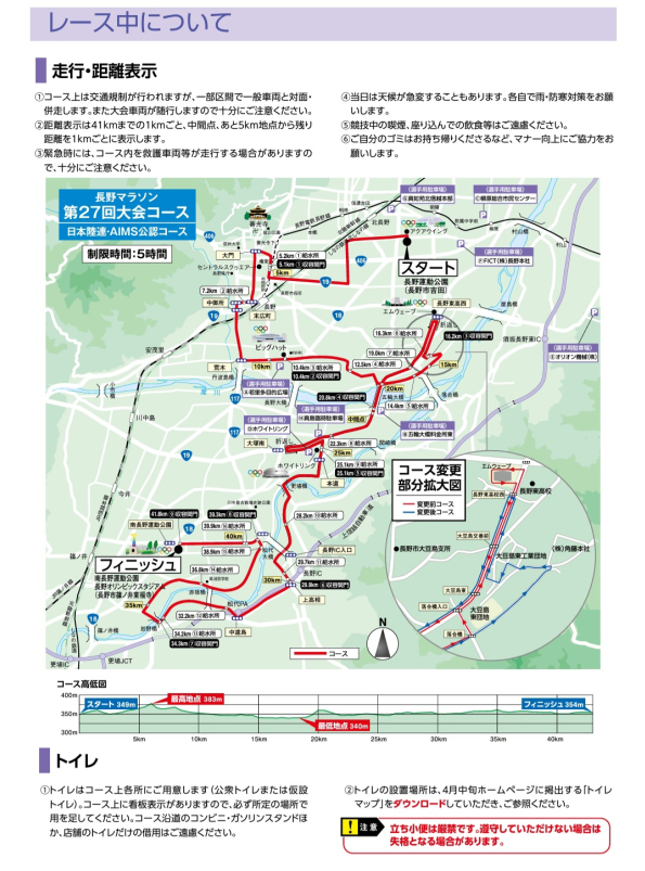由於起跑點設在長野運動公園,必須從長野站的北信濃線搭乘一站到北長野站,再步行約20分鐘才能抵達會場,說實在有點不方便😅幸好會場寄物、熱身場地都很順暢,至於廁所部分等小便的人潮流動很快,大號貌似要排很久,還好我都在飯店處理得差不多了。另外終點則在長野市南邊的南長野運動公園中的奧林匹克體育場,此處必須要搭乘電車到筱之井站,再轉公車才能抵達,幸好都有賽事接駁巴士可以搭乘。