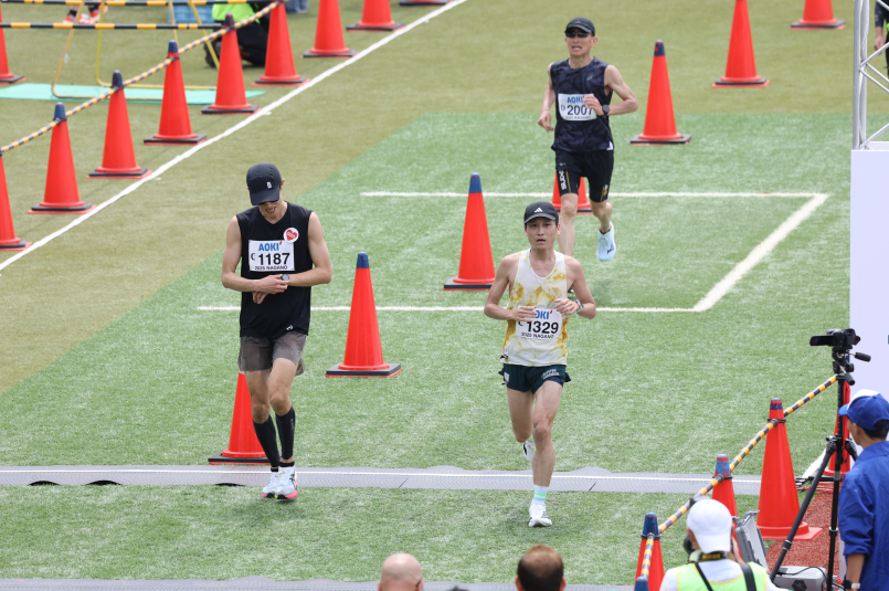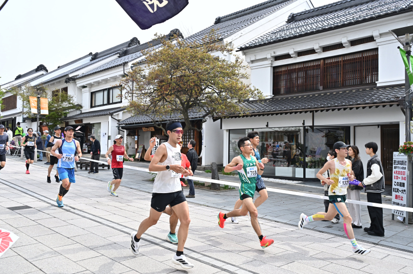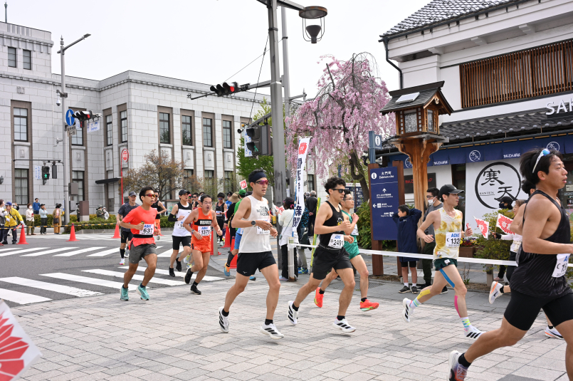 起跑5km迎來第一個水站,爾後每2.5km都設一個水站,各水站安排的順序都是前面放置運動飲料,後段則是純水,部分水站有一些食物或amino能量膠。沿路加油民眾很多,特別在前半的市區路段,大家興高采烈地為跑者們加油吶喊,十足的日本路跑賽事氛圍🥳