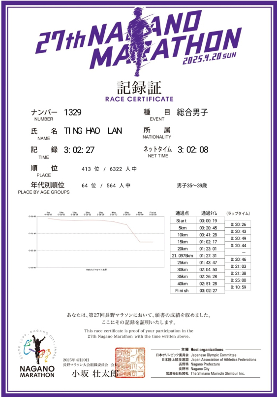 以我個人能力來說,這次遇到二十度起跳的溫度,與11點過後的逆風都大大提升了難度,不過過去幾年長野馬的氣溫都是15度以下,算很適合跑馬拉松,未來是否都如今年一樣也很難說。