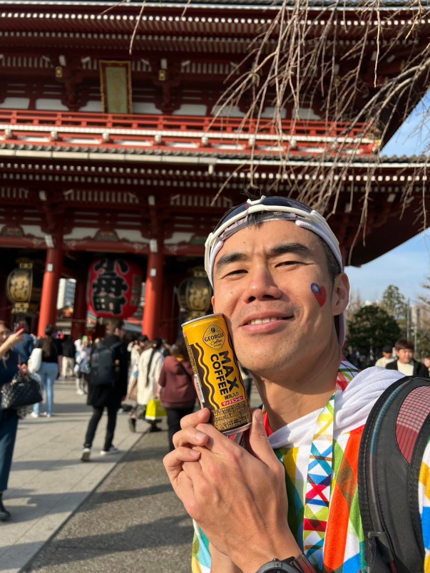 看到豹大王,跟他裝熟地打個招呼,我就是長榮馬賽後在你旁邊泡腳的那位(誤)然後走了很遠很遠、很遠很遠,終於拿到物資,跟慕神、家人還有線上應援的夥伴報平安,謝謝慕神的移動應援,她撈超多人。好啦,來去淺草逛街旅行囉!