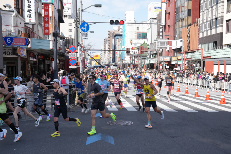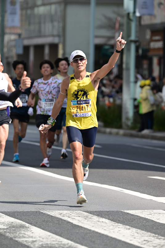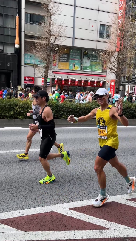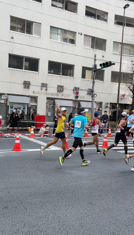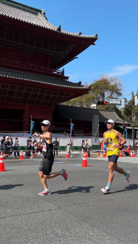 在 15-20k 這兒對淺草比較有記憶,就是打算跑完步要來走走逛逛的地方,所以要健健康康跑完才行,下午我還要跟著慕神來這,可不能跑到攤掉。在雷門郵便局附近被抓到,聽到喊聲開心揮手回應。