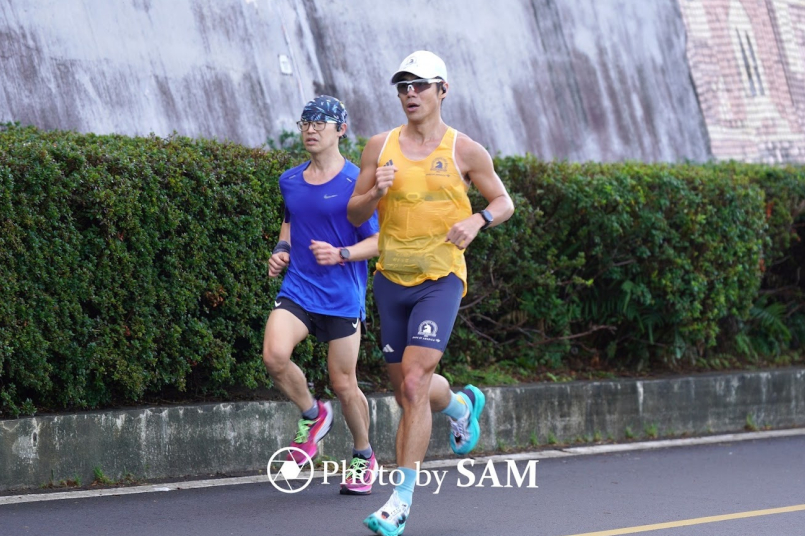 折返點都是向右的180度迴轉,慕神有交代要靠應援側她才看得到,好,我有記得。賽前一天,說大概照建議瓦數去跑,天氣比較熱,這狀態能拼 sub3 就算撿到了。