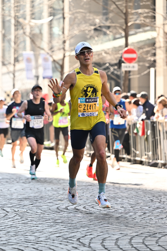 看了天氣,比賽當天是來日本最熱的一天,沒有承襲賽前幾天的甘霖涼,而且跑完皇居有上下坡的配速跑後,臀部後側有點微拉到的感覺,此時是心倒是挺涼的。沒啦,是擦藥推屁屁所以涼涼的。