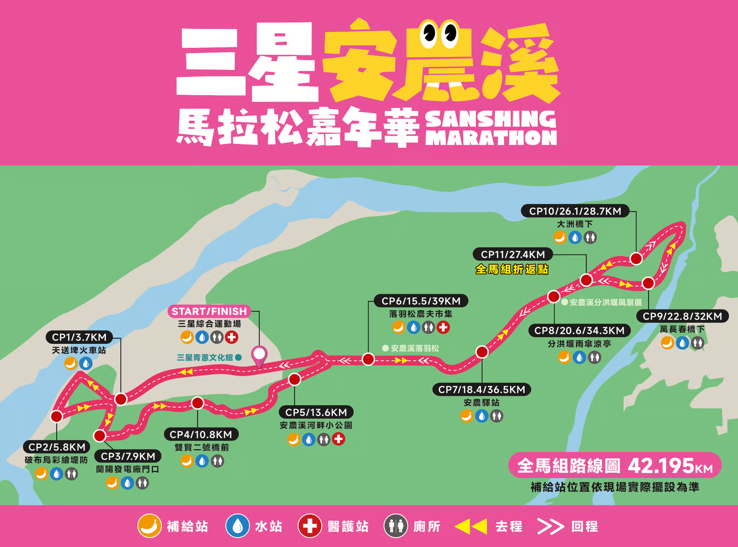 參賽贈品機能排汗衫、運動頭巾、號碼布+別針、大會保險、三星米、完賽獎牌、完賽證書、特色美食伴手禮、礦泉水