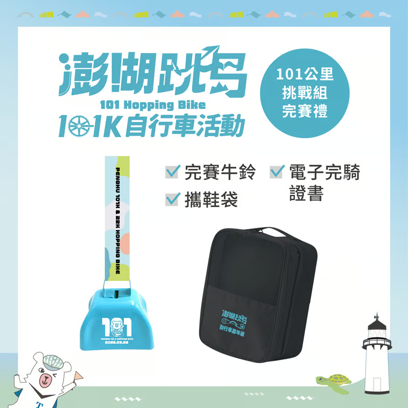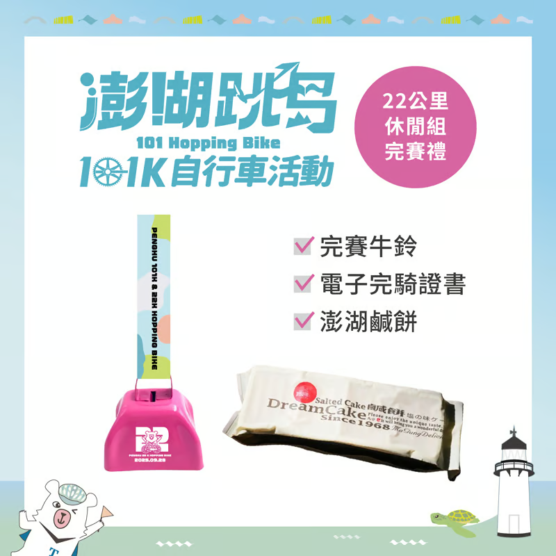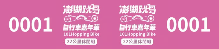 活動組別活動名稱 2025澎湖跳島101K自行車活動(101 HOPPING BIKE) 主辦單位 交通部觀光署澎湖國家風景管理處 承辦單位 名衍行銷股份有限公司 活動日期 114年 9 月 28日(日) 06:30~15:30 報名時間 即日起至114年8月22日(星期五)23:59:59止 活動組別 22公里休閒組 101K挑戰組 活動限制人數 (團體/個人)400人 (團體/個人)600人 活動路線 澎湖遊客中心-