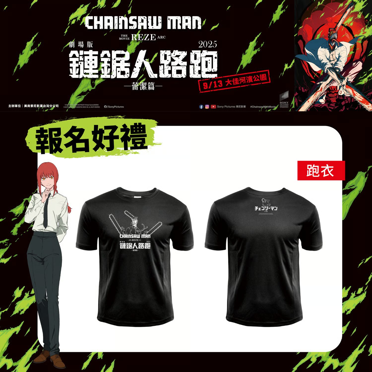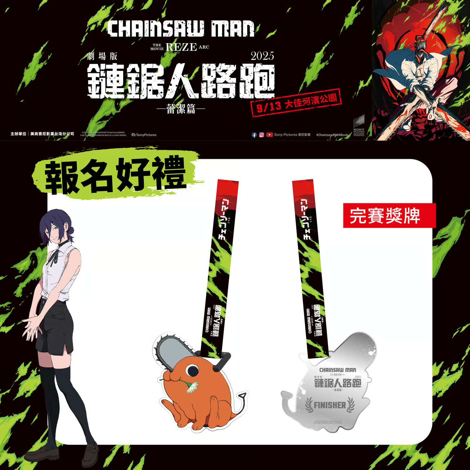 參賽贈品號碼布、紀念衣、鏈鋸人獎牌、完賽證書、電影預售票