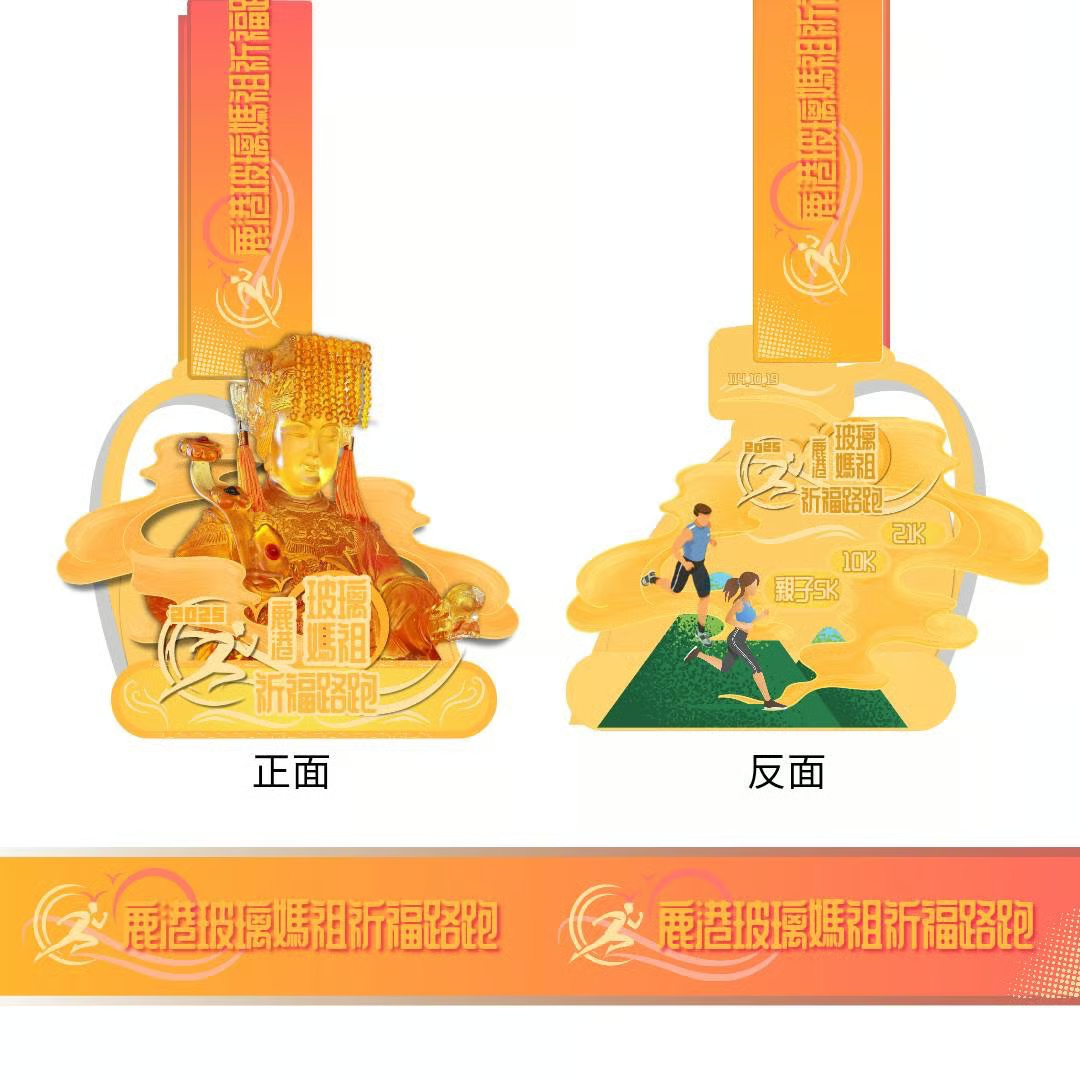 參賽贈品高級紀念衫、晶片、號碼布、別針、保險、完賽獎牌、成績證明、護聖平安餅、平安祈福帽
