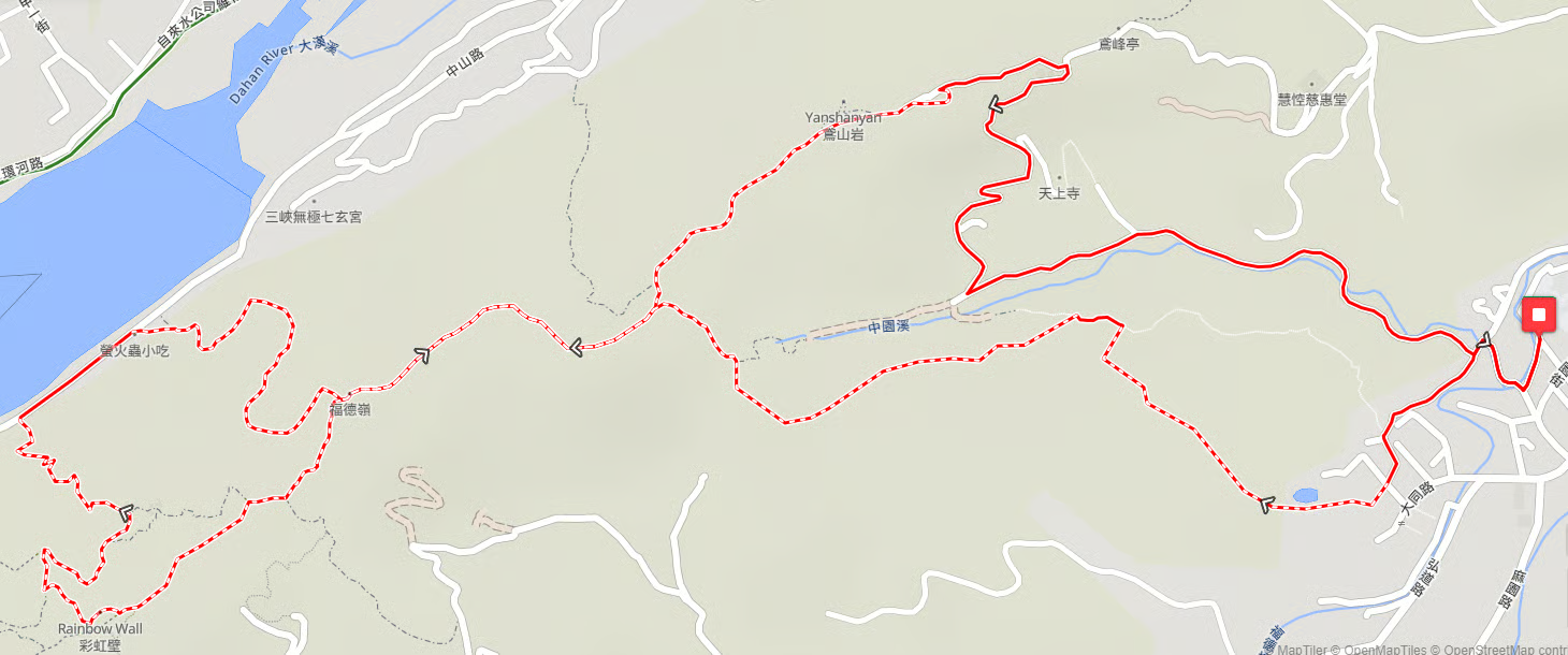 路線說明:中園國小>>鳶尾山步道>>福德坑山東峰>>鳶山>>彩壁>>CPA-4.4K>>螢火蟲小吃 >>鳶山>>鳶山大鐘>>大同路 240 巷>>鳶尾山步道>>中園國小